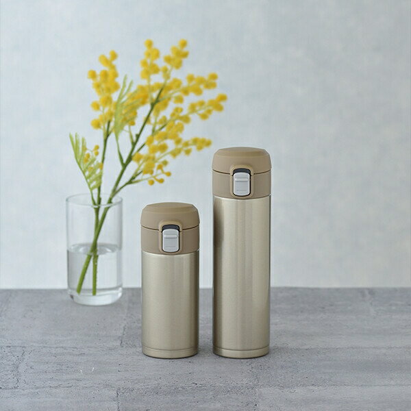 水筒 オミット ワンタッチ栓スリムマグボトル 200ml ゴールド RH-1509 | 直飲み マグボトル 携帯ボトル ワンタッチ すいとう ステンレス 保温 保冷 真空断熱 ステンレスボトル コンパクト