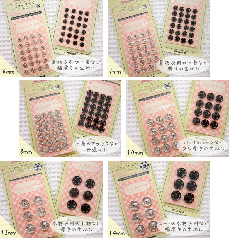 縫いつけタイプ≪スナップボタン≫【8mm/7mm/6mm】色は白と黒があります。お洋服や小物、ゼッケンの取り付けにも♪