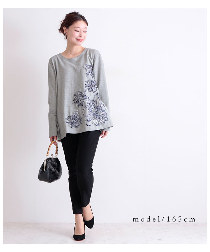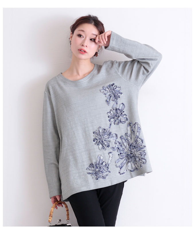 商品名: 花モチーフ付きAラインのカットソーチュニック商品カテゴリー: レディースファッション トップス カットソー チュニック袖丈/着丈: 長袖 チュニック丈 ミディアム丈カラー(柄): グレー特徴: 花モチーフ季節: 春 秋 冬 春服 秋服 冬服レディースファッション 30代ファッション 40代ファッション 50代ファッション 60代ファッションきれいめ 上品 大人可愛い 大人 可愛い かわいい おしゃれ 30代 40代 50代 60代ミセス ミセスファッション レディース あす楽大人可愛い 洋服 レディース ファッション サワアラモード sawaalamode● DETAIL 商品詳細 ●サイズ着丈67cm バスト59cm袖丈55cm 肩幅46cm裾幅62cm 首幅21cmアームホール21cm 袖口12.5cm素材ポリエステル80%綿 20%生産国中国備考環境によっては実際のお色と多少異なる場合がございますが、ご了承くださいませ。